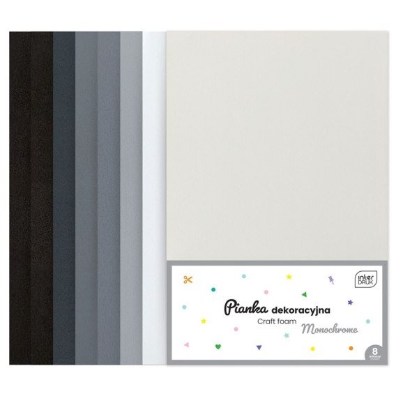 Arkusz piankowy pianka dekoracyjna MONOCHROME kolor: mix 8 ark. [mm:] 210x297 Noster (8szt)
