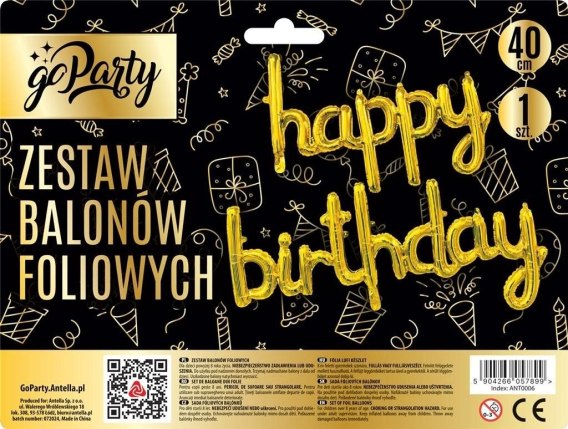 Balon foliowy zestaw balonów 13 elementów Happy Birthday złote Antella