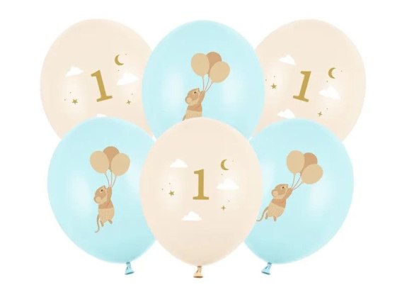 Balon gumowy Myszki z cyferką 1, Light Blue mix Partydeco (SB14P-363-001J-6)