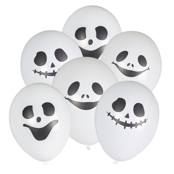 Balon gumowy z halloweenowym nadrukiem - duszki (6 szt.) biały 280mm Arpex (KB3057)