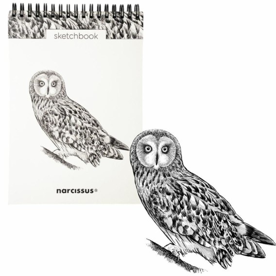 NARCISSUS pionowy szkicownik artystyczny na spirali A5 Sowa, 60 kartek z perforacją Szkicownik do rysowania A5 marki Narcissus zawiera 60 arkuszy gładkiego w dotyku papieru w odcieniu czystej bieli. Papier posiada delikatną perforację, która ułatwia wyrywanie kartek. Grube plecki o grubości 1,5 mm dają solidną podstawę do rysowania w plenerze. Przewracanie kartek jest bardzo wygodne dzięki spirali o dużych oczkach. Szkicownik świetnie nadaje się do stosowania najróżniejszych technik rysunkowych (ołówek, węgiel, grafit, kredka i pastel). Gramatura papieru 120 g/m2 sprawia, że równie dobrze sprawdza się w przypadku technik mokrych (tusz, markery wodne, rozmycia akwarelowe). Szkicownik spełni wymagania zarówno profesjonalnych twórców, jak i uczniów, studentów i amatorów. Specyfikacja: format A5 bez zadruku 60 kartek z perforacją gramatura 120 g/m2 wyprodukowano w Polsce