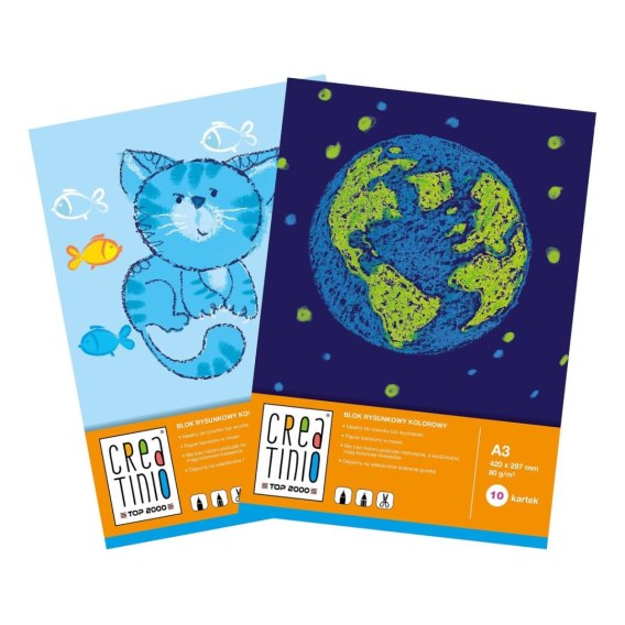 Kolorowe bloki rysunkowe odporne na wielokrotne ścieranie gumką. Z tyłu umieszczono kartonową podkładkę usztywniającą. Idealnie nadają się do rysunków i szkiców. Kolorowe okładki zachęcają i inspirują do tworzenia ciekawych prac artystycznych.