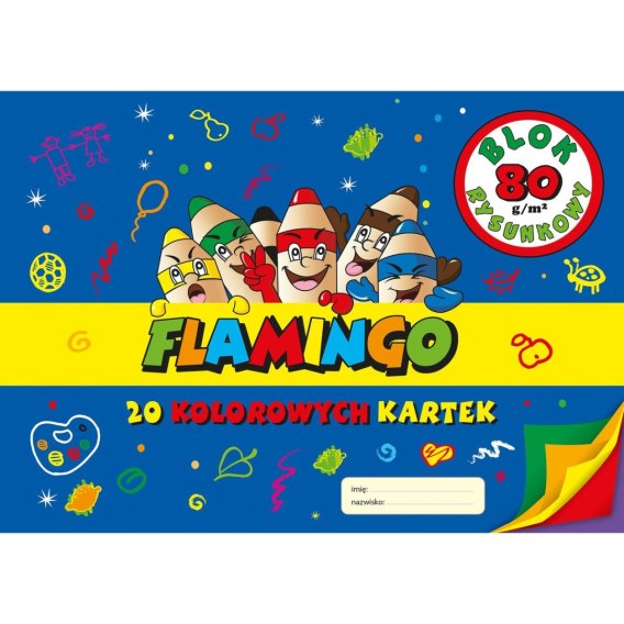 Blok rysunkowy Flamingo kolorowy A4 20 kartek 80g/m?