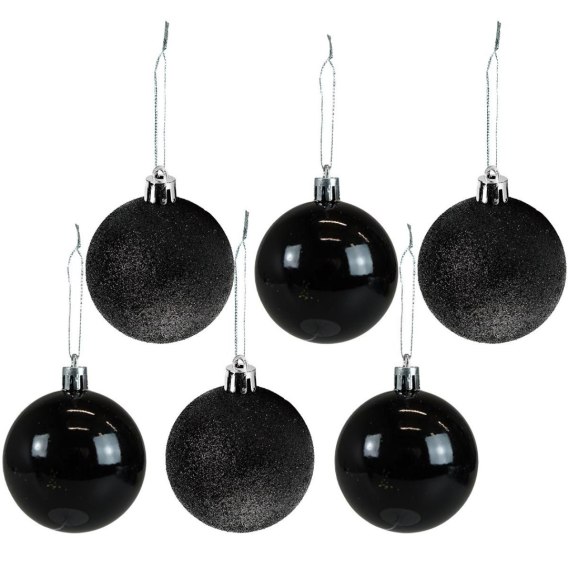 Zestaw bombek czarno-brokatowych (6 szt.)