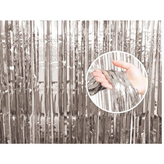 Dekoracja kurtyna na drzwi srebrna 90 x 240 cm Godan (PF-KDSR)