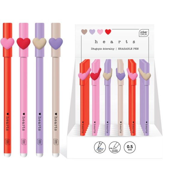 Długopis wymazywalny HEARTS wkład niebieski 0,5mm Noster (5902277329707)