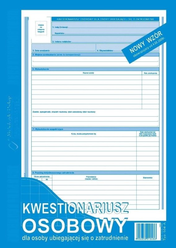 Druk offsetowy A4 Kwestionariusz osobowy dla osoby ubiegającej się o zatrudnienie 40k. Michalczyk i Prokop (504-A)