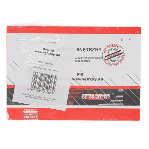 Druk offsetowy A6 dowód wewnętrzny 100k. Stolgraf