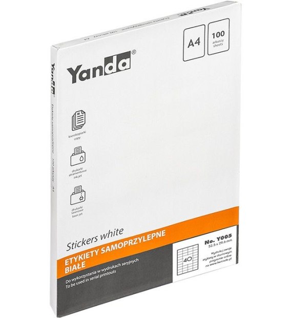 Etykieta samoprzylepna A4 Y005 biała [mm:] 52,5x29,6 Yanda (150-1482)