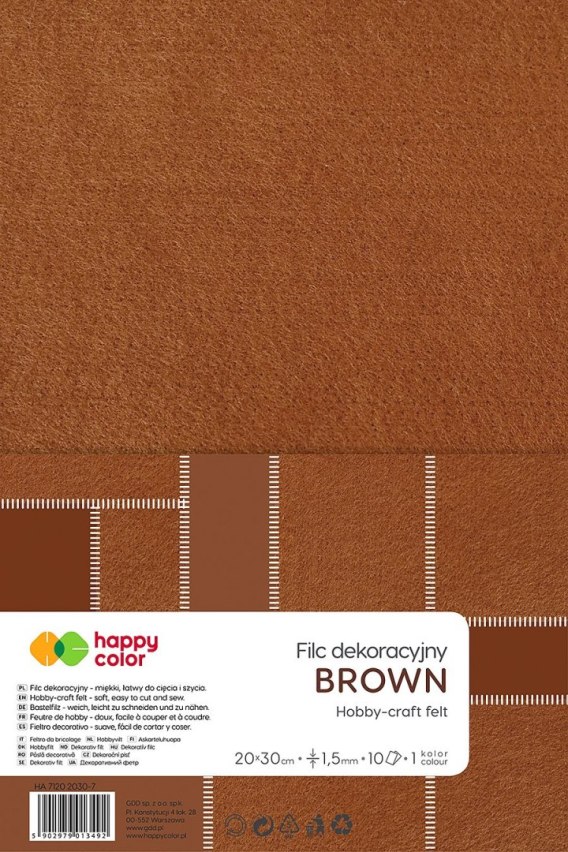 Filc kolor: brązowy 10 ark. [mm:] 200x300 Happy Color (HA 7150 2030-7)