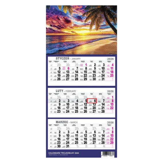 Kalendarz Trójdzielny w mniejszym formacie (210 x 450 x 4 mm) to kompaktowe i praktyczne rozwiązanie dla osób, które chcą mieć szybki dostęp do dat przy ograniczonej przestrzeni. Idealny zarówno do użytku domowego, jak i biurowego szczególnie tam, gdzie miejsce na ścianie jest ograniczone, a potrzeba organizacji czasu niezmienna.