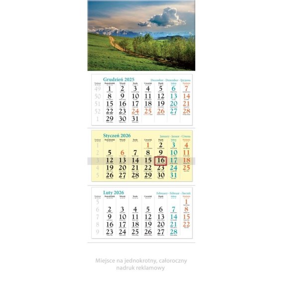 Kalendarz ścienny trójdzielny 320mm x 860mm Lucrum (KT04)