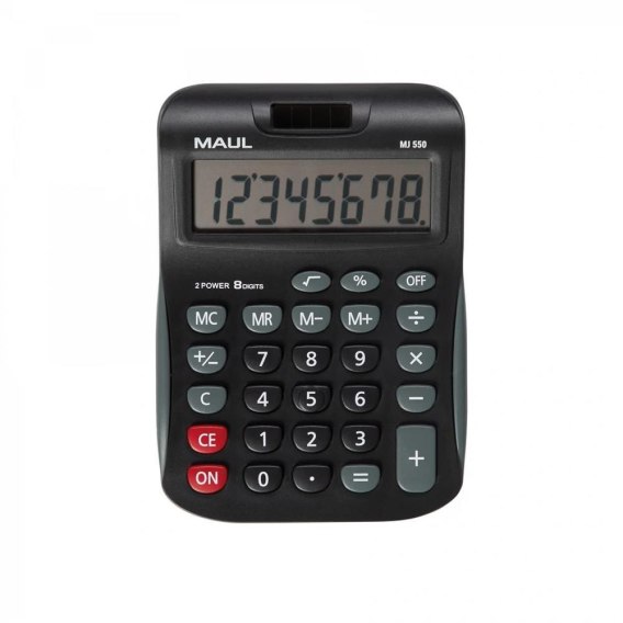 Biurkowy kalkulator MAUL M 550 w kolorze czarnym z dużym, 8-pozycyjnym wyświetlaczem LCD. Niezawodny, stylowy i dokładny. Sprawiają, że życie staje się kolorowe! Dostępny w 3 wersjach kolorystycznych o świeżym i uniwersalnym designie. Doskonały do szkoły i w terenie. Szybsze wyszukiwanie: przyciski funkcyjne i numeryczne w różnych kolorach. Ergonomiczny wyświetlacz umieszczony pod kątem dla ułatwionego odczytu. Kompaktowy rozmiar i zaokrąglone krawędzie sprawiają, że dobrze leży w dłoni. Z łatwymi do czyszczenia, plastikowymi przyciskami. Energooszczędny, dzięki podwójnemu zasilaniu baterią i baterią słoneczna, z funkcją automatycznego wyłączania. Wyposażony w 3 przyciski pamięci i do zmiany znaku, obliczanie pierwiastków kwadratowych i procentów. Antypoślizgowe punkty na spodzie kalkulatora. Gwarancja: 5 lat. Wymiary: 15,5 x 11,0 x 2,5 cm. Zawiera jedną baterię (LR1130). Ekologiczne opakowanie z tektury, bez użycia plastiku, z eurozawieszką.