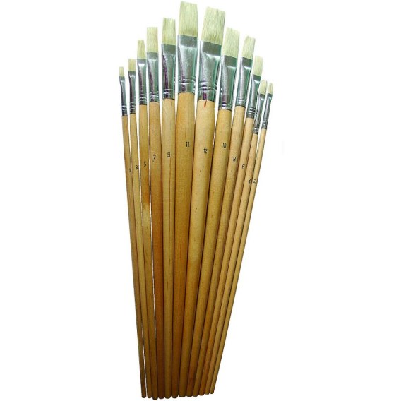Komplet pędzli płaskich do farb olejnych 12 szt. nr od 1 do 12
