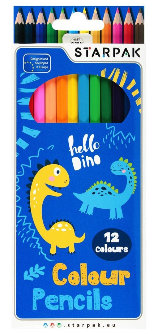 Zalety produktu: wysoka jakość rysików, najbardziej podstawowe przybory plastyczne w przedszkolu i szkole, żywe i intensywne kolory, łatwe w struganiu, nie łamią się, nie brudzą, pakowane w pudełko z systemem easy open dzięki, któremu można je łatwo otworzyć i potem zamknąć. Komplet 12 kredek STARPAK w kartonowym pudełku z serii Monster. Kredki to najbardziej podstawowe przybory plastyczne. Wykorzystywane podczas zabawy i nauki w domu, przedszkolu i szkole. Wszystkie kredki STARPAK mają żywe kolory, dzięki czemu tworzone prace będą zachwycały intensywnością i nasyceniem barw. Kredki STARPAK są łatwe w struganiu i nie łamią się, co jest bardzo ważne, szczególnie dla młodszych dzieci. Dzięki tym kredkom można precyzyjnie rysować kształty i kontury oraz kolorować. Zmieniając nacisk można uzyskać bardziej lub mniej intensywny kolor. Zapoznaj się również z innymi produktami STARPAK z serii Dino Zawartość opakowania: 12 kredek ołówkowych w 12 kolorach. Kredki wykonane z kolorowanego węgla drzewnego grafit w drewnianej osłonce. Wymiary/waga: wymiary produktu dł. cm : 18 cm, wymiary opakowania wys. x szer. x gł. cm : 21x9x1, waga produktu bez opakowania 1 szt. kg : 0,01 kg, waga produktu w opakowaniu kg : 0,07 kg. Produkt przeznaczony dla dzieci w wieku: 3 . Kredki pakowane w kartonik. Pakowane iner 12szt. Karton 144szt.
