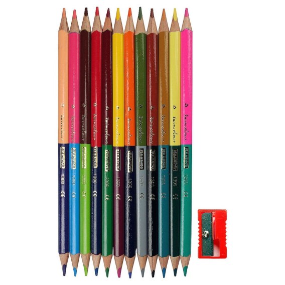 Kredki ołówkowe Flamingo dwustronne 24 kolory trójkątne z temperówką