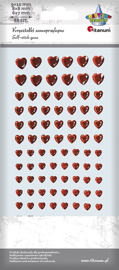 Kryształki Craft-Fun Series samoprzylepne czerwone Titanum (serca)