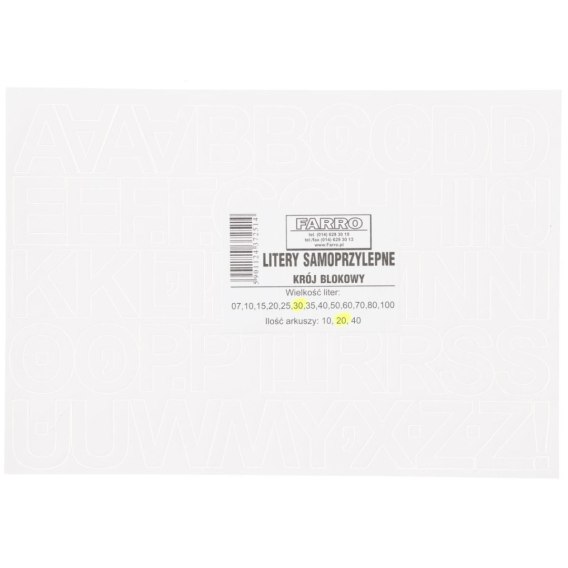 Litery samoprzylepne biały Farro