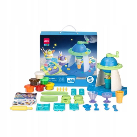 Ciastolina masa plastyczna EH723 kosmiczne lody 6 kolorów Deli Ciastolina to masa plastyczna służąca do kreatywnej zabawy i celów edukacyjnych dla dzieci, ale też narzędzie terapeutyczne i relaksacyjne dla dorosłych. Jest bezpieczniejszą alternatywą dla tradycyjnej plasteliny, gdyż jest miękka, łatwa w formowaniu i zazwyczaj nietoksyczna.