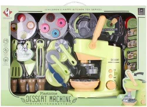 Zalety produktu: rozwijanie wyobraźni, rozwijanie zdolności manualnych i artystycznych, rozwój inteligencji, bogata wyobraźnia. Zestaw masy plastycznej Piekarnia MEGA CREATIVE to świetny pomysł na spędzenie wolnego czasu z rodziną 24 różne formy spożywcze Maszynka posiada efekty świetlne oraz dźwiękowe, dodatkowa przyssawka uniemożliwia przesunięcie się maszynki podczas jej użytkowania. Zawartość zestawu: maszynka do wyrabiania ciasta, 5x masa plastyczna w pojemniczku mix kolor, szczypce, podbierak, łyżka do tortu, 4x foremki do lodów, 4x talerzyk, nóź do wykrawania masy plastycznej, 2x nóż do pizzy , 6x wymienne pojemniki-misy do wyrabiania ciasta. Wszystkie produkty wykonane z plastiku, są imitacją prawdziwych Wymiary/waga/baterie: wymiary produktu maszynka do wyrabiania ciasta- dł. x wys. x gł. cm : 13x29x20, wymiary opakowania dł. x wys. x gł. cm : 50x35x13, waga produktu bez opakowania kg : 1,20 kg. waga produktu w opakowaniu kg : 1,48 kg, wymaga zasilania bateriami-3x AG13/LR44- załączone do zestawu. Produkt przeznaczony dla dzieci w wieku: 6 . Pakowany w kartonik z okienkiem. W kartonie po 12 szt.