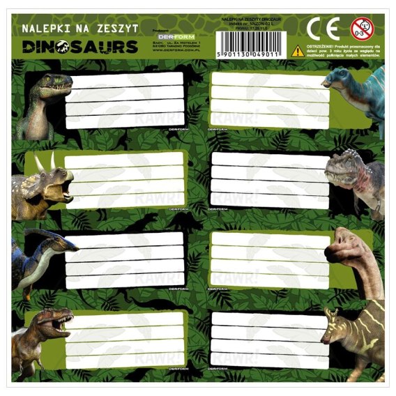Naklejka na zeszyt Dinozaur [mm:] 160x160 Derform (NNZDN)
