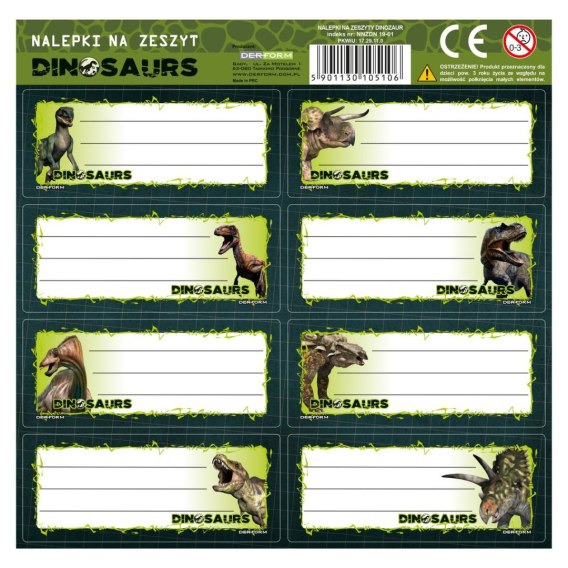 Naklejka na zeszyt Dinozaur [mm:] 160x160 Derform (NNZDN19)