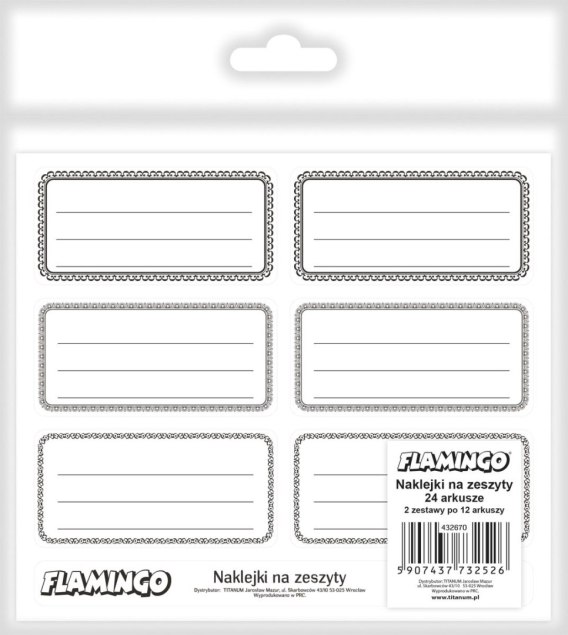 Naklejka (nalepka) na zeszyt/etykieta biało-czarna 35x73mm Flamingo (432670)