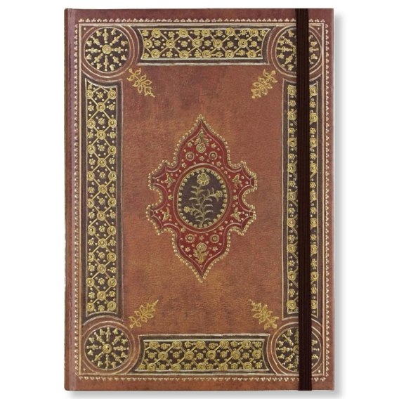 Mały notatnik firmy Peter Pauper Press - Oświecenie (Enlightenment). Każdy notes tej marki jest wyjątkowym dziełem sztuki. Bogactwo wzorów i kolorów pozwala wybrać ten idealny. Notes idealnie nadaje się na prezent. Okładka odwzorowuje XVIII-wieczną oprawę książki autorstwa Antoine`a Michela Padeloupa, królewskiego introligatora francuskiego króla Ludwika XV. Oryginalna skórzana okładka zawierała księgę obrzędów Wielkiego Tygodnia. Szczegóły: - okładka sztywna, wytłaczana, zdobiona złotą folią - złocone brzegi stron - notes jest zszywany, a po otwarciu leży płasko - ułatwia to pisanie - zamknięcie na gumkę - na końcu koperta na luźne notatki, wizytówki, itp. - kartki wykonane z wysokiej jakości papieru bezkwasowego - niezwykle trwałe, z cechami gwarantującymi długi czas użytkowania - gramatura 120 gsm - zadruk w jasnoszare linie, dwustronny, na lekko kremowym papierze - wymiary: 12,7 cm x 17,8 cm - format zbliżony do B6 - ilość stron: 160