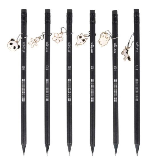 Ołówek z gumką z zawieszkami z czarnego drewna