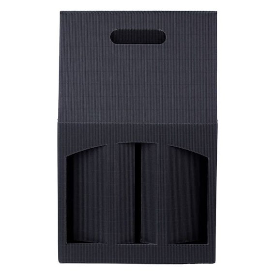 Elegancki kartonik na trzy butelki wina, piwa, wódki wykonany mocnej eleganckiej tektury z fakturą koloru czarnego. Kartoniki wysyłamy rozłożone ale są bardzo proste do złożenia. Wymiary wewnętrzne