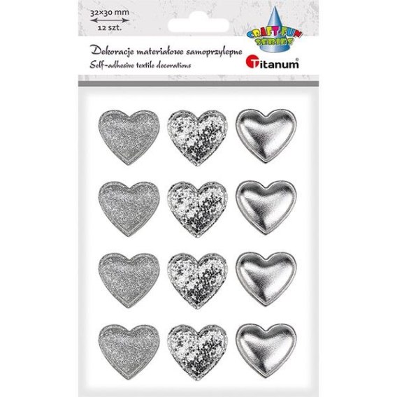 Ozdoba materiałowa Craft-Fun Series samoprzylepna Srebrne serduszka Titanum (BJ25042712)