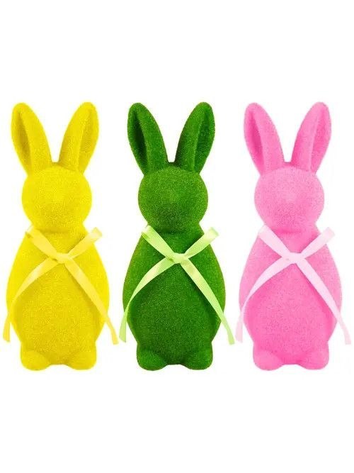 Dekoracyjny zajączek wielkanocny z flokowaną, aksamitną powierzchnią.