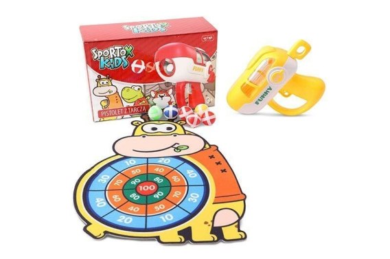 Pistolet z tarczą to świetna propozycja dynamicznej zabawy dla wszystkich dzieci, które uwielbiają różne aktywności na świeżym powietrzu. Zestaw składa się z wyprofilowanego pistoletu na kulki, miękkiej tarczy z kolorową punktacją i żyrafą oraz sześciu kulek na rzepy. Tarczę można zawiesić na dowolnej powierzchni. Zabawa polega na celowaniu i strzelaniu do tarczy używając pistoletu. Kulki przyczepiają się do tarczy za pomocą rzepów, co pozwala dzieciom śledzić swoje postępy i zapisywać uzyskane wyniki. Jest to doskonały sposób na rozwój koncentracji, koordynacji ruchów i wyobraźni dziecka. Strzelaj do tarczy i zdobywaj punkty! Zorganizuj turniej strzelecki i przekonaj się, kto jest najlepszym strzelcem!