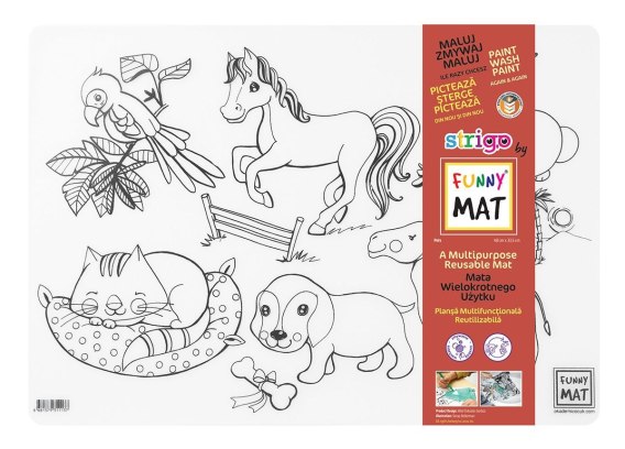 Wodoodporne Maty wielokrotnego użytku "Strigo Funny Mat" to nie tylko zwykłe podkładki. Wykonane z polipropylenu i w pełni nietoksyczne, są one specjalnie zaprojektowane, aby przynosić radość i korzyści edukacyjne.