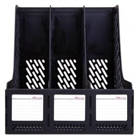 Pionowy potrójny pojemnik Deli 9845 to świetna propozycja ku organizacji dokumentów. Jest to stabilny organizer, wykonany z mocnego plastiku, dzięki któremu skutecznie przechowasz dokumenty, zapewniając jednocześnie łatwy i przejrzysty do nich dostęp. Produkt składa się z 3 pionowych, złączonych ze sobą przegródek.
