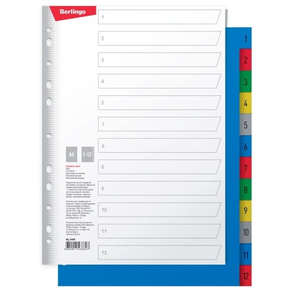 Przekładka numeryczna A4 120g 1-12 Berlingo (4620011436627)
