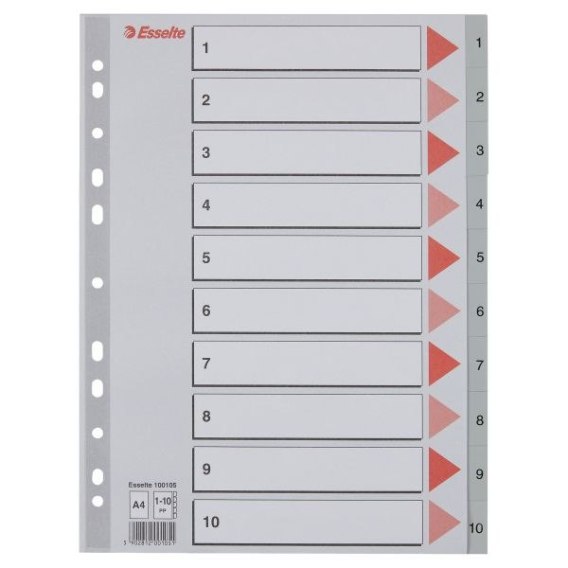 Przekładka numeryczna A4 szara 10k 1-10 Esselte (100105)