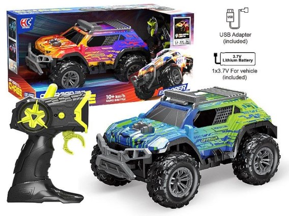 Samochód terenowe na radio, 10 km/h, kolorowe światła, kabel USB i bateria litowa Adar (631670)