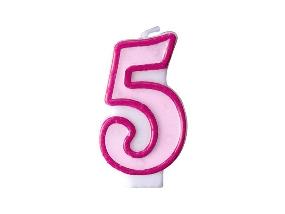 Świeczka urodzinowa Cyferka 5 w kolorze różowym 7 centymetrów Partydeco (SCU1-5-006)