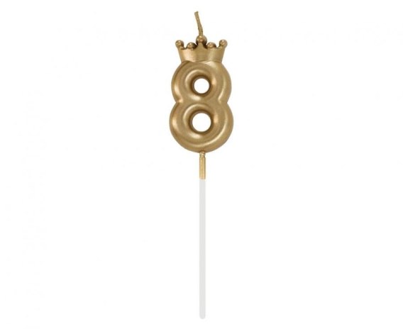 Świeczka urodzinowa cyferka 8, z koroną, szampańskie złoto, 6 cm Godan (HC-SCK8)
