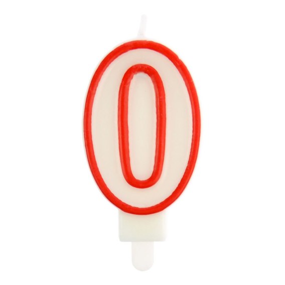 Świeczka urodzinowa cyferka nr 0 biała czerwona obwódka Arpex (DS0033CZE-0-9906)