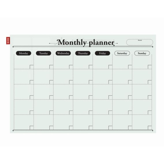 Tablice szklane planery MemoBe.Właściwości suchościeralne pozwalają na pisanie po powierzchni tablicy markerami kredowymi lub suchościeralnymi. Natomiast właściwości magnetyczne dają możliwość umieszczania na tablicy rysunków, plakatów i ogłoszeń za pomocą dedykowanych magnesów neodymowych. Nadrukowany w kolorze czarnym terminarz pozwala na planowanie w cyklach miesięcznych. Powierzchnia wykonana jest z wysokiej jakości szkła hartowanego biodegradowalnego o grub. 4 mm z gładko oszlifowanymi krawędziami. Z tyłu tablicy zastosowano jednolity i galwanizowany metal, dzięki któremu tablica posiada właściwości magnetyczne. W zestawie dołączone są śruby i kołki rozporowe z instrukcją montażu tablicy na ścianie oraz marker, 2 magnesy neodymowe w kolorze srebrnym, gąbka/czyścik do tablicy.Połączenie wysokiej jakość szkła oraz eleganckie wykończenie i ciekawa kolorystyka sprawiają, że tablica doskonale sprawdza się nie tylko jako produkt codziennego użytku, ale również jako interesujący i szlachetny przedmiot stanowiący ciekawy element wystroju każdego wnętrza zarówno w domu jak i w pracy. Szczególną zaletą jest bardzo dobra ścieralność markera bez pozostawiania smug i plam na powierzchni tablicy. Trwały nadruk odporny jest na ścieranie i działanie płynów dezynfekujących. Szeroka i bogata gama wymiarów i kolorów umożliwia realizację dowolnych aranżacji na ścianie zarówno w biurze jak i w domu. Niezależnie od stylu i wystroju wnętrza, tablice szklane doskonale komponują się z resztą otoczenia. Montaż w układzie poziomym. Tablicę cechuje niezwykła trwałość i sztywność dzięki zastosowaniu wysokiej jakości materiałów, które zapewniają bezpieczeństwo podczas ich montażu i użytkowania. Okres gwarancji na tablicę wynosi 2 lata.Czyszczenie tablicy - za pomocą miękkiej gąbki lub ściereczki. Możliwość czyszczenia płynami dezynfekującymi bez ich uszkodzenia. Tablice szklane MemoBe posiadają Certyfikat Zgodności, który potwierdza, że wyrób spełnia wymagania zawarte w normie PN-EN 14434:2010, tzn. jest bezpieczny podczas jego montażu i użytkowania. Produkt opatrzony jest znakiem B (Bezpieczeństwo).