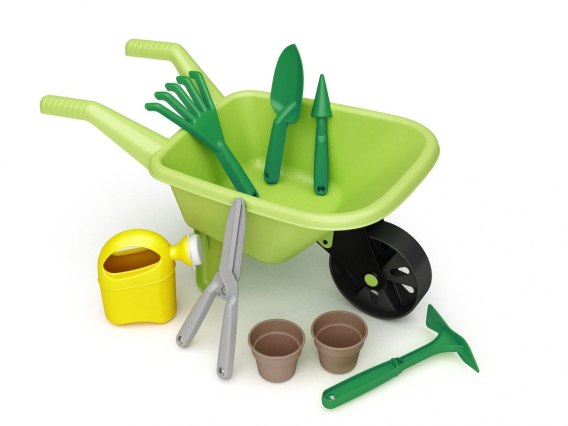 Zabawki do piasku - niekończąca się zabawa Kiedy Twoje dziecko chce pomóc w ogrodzie, zapewnij mu do tego odpowienie dziecięce narzędzia. Wiosenne porządki, zbieranie skoszonej trawy czy grabienie jesiennych liści będzie super zabawą dla każdego malucha. Taczka ogrodnika nadaje się do zabawy zarówno na dworze jak i w domu. Taczka wraz z narzędziami ogrodowymi przyda się zarówno w ogrodzie do przydomowych prac jak i do rozładunku materiałów budowlanych czy przewiezienia ziemii. Można nią wozić co tylko podpowie dziecku jego wyobraźnia - piasek, zabawki lub inne skarby. Taczka jak i pozostałe akcesoria zostały wykonane, z odpornego na warunki atmosferyczne tworzywa, dzięki czemu posłuży dzieciom przez długie lata. Zestaw zawiera wszystkie niezbędne akcesoria do prac ogrodowych czy zabawy w piaskownicy i składa się z: • solidnej taczki • doniczek • konewki • pazurek • łopatki • sekatora • pikownika • motyki Zabawa na świerzym powietrzu przynosi wiele korzyści rozwojowych dla dzieci Pamięta, że prace w ogrodzie to nie tylko wysiewanie nasion czy sadzenie roślin, ale przede wszstkim prace pielęgnacyjne i porządkowe. Zestaw jest dostępny w naturalnych kolorach dzięki czemu wygląda bardzo realnie i zachęca dzieci do odkrywania codziennych zajęć, w których uczestniczą dorośli. Nie ma nic lepszego od zabaw na świeżym powietrzu, które przynoszą mnóstwo korzyści a zabawa w ogrodnika to również rozwój zdolności manualnych i koordynacji ruchowej. Uwaga! Produkt przeznaczony dla dzieci od 24 miesiąca życia.Czyścić powierzchnię wilgotną ściereczką.Przeczytać i zachować etykietę. Opakowanie nie jest zabawką dlatego zakazuje się udostępniania dzieciom do zabawy.