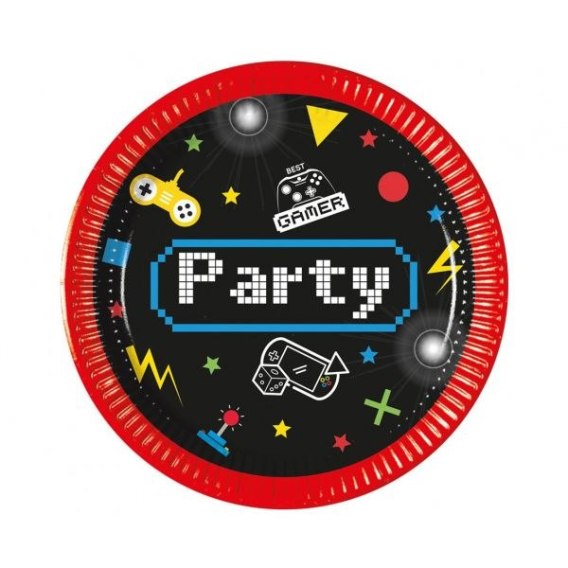 Talerzyki papierowe Gaming Party, next generation, 20cm, 8 szt. (plastic-free)