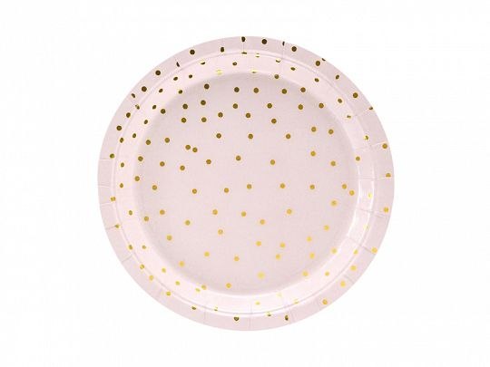 Talerz jednorazowy Kropki, jasny róż papier śr. 180mm 6 szt Partydeco (TPP50-081J)