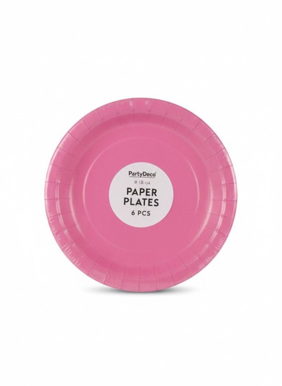 Talerz jednorazowy ciemno różowy papier śr. 180mm 6 szt Partydeco (TPP90-006)