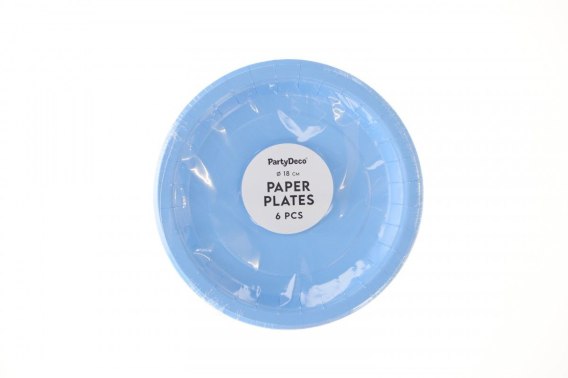 Talerz jednorazowy jasno niebieski papier śr. 180mm 6 szt Partydeco (TPP90-001J)