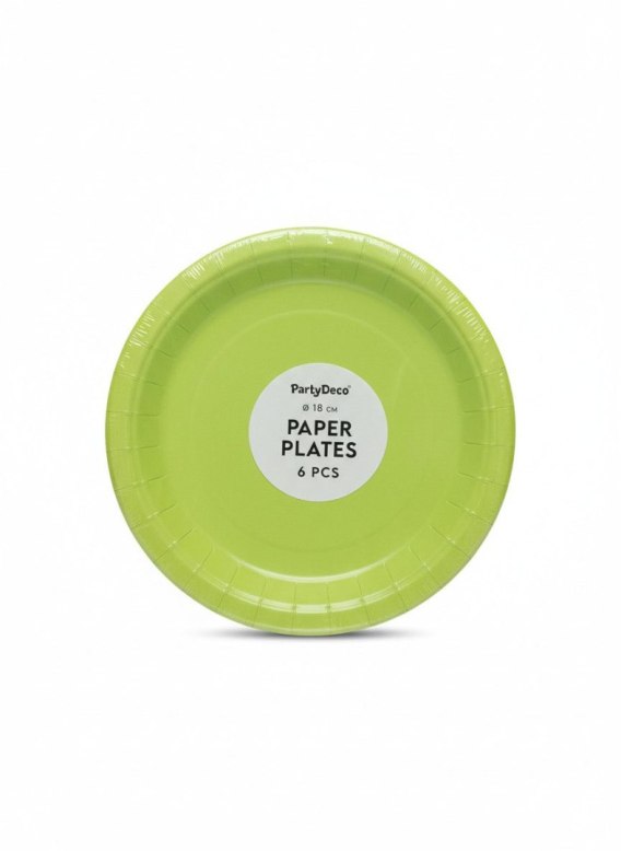 Talerz jednorazowy jasno zielony papier śr. 180mm 6 szt Partydeco (TPP90-102)