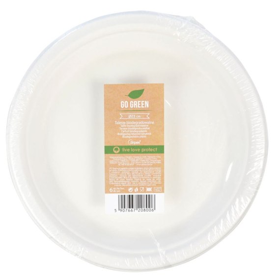 Talerz jednorazowy trzcina cukrowa 23 cm papier śr. 230mm 6 szt Arpex (KG8006)