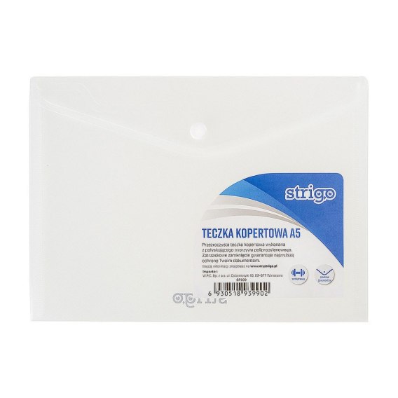 Teczka plastikowa na guzik A5 przezroczysty Strigo (SF009)